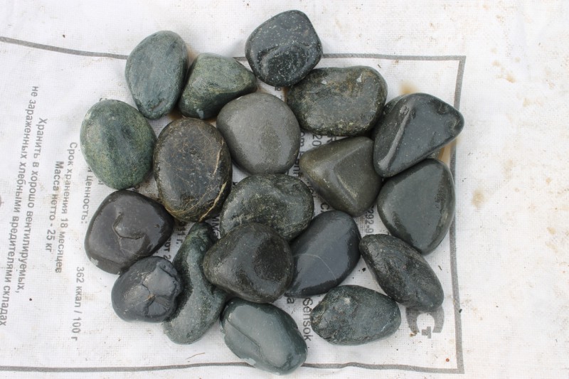Галька горная речная окатанная (темно-серая)