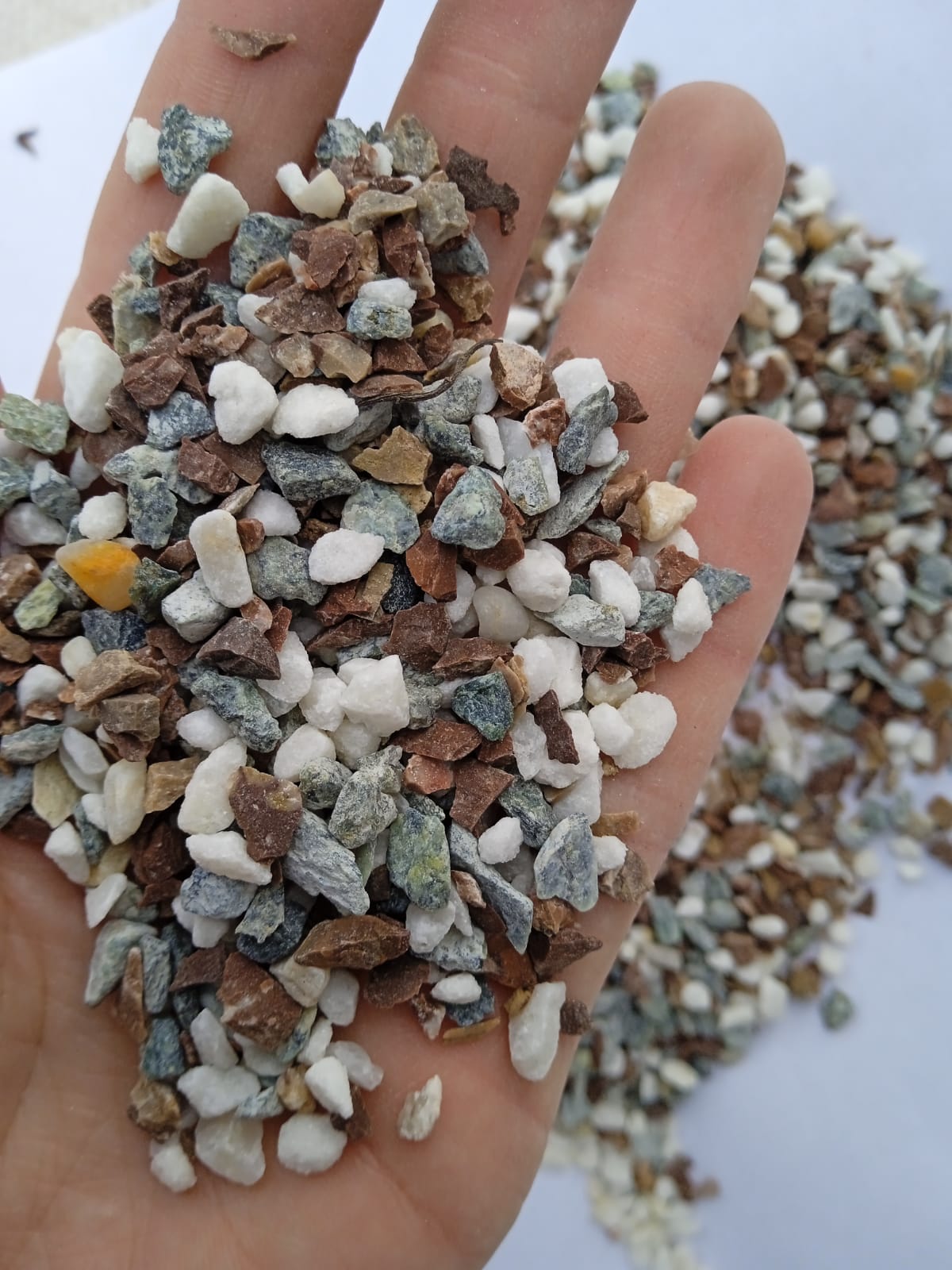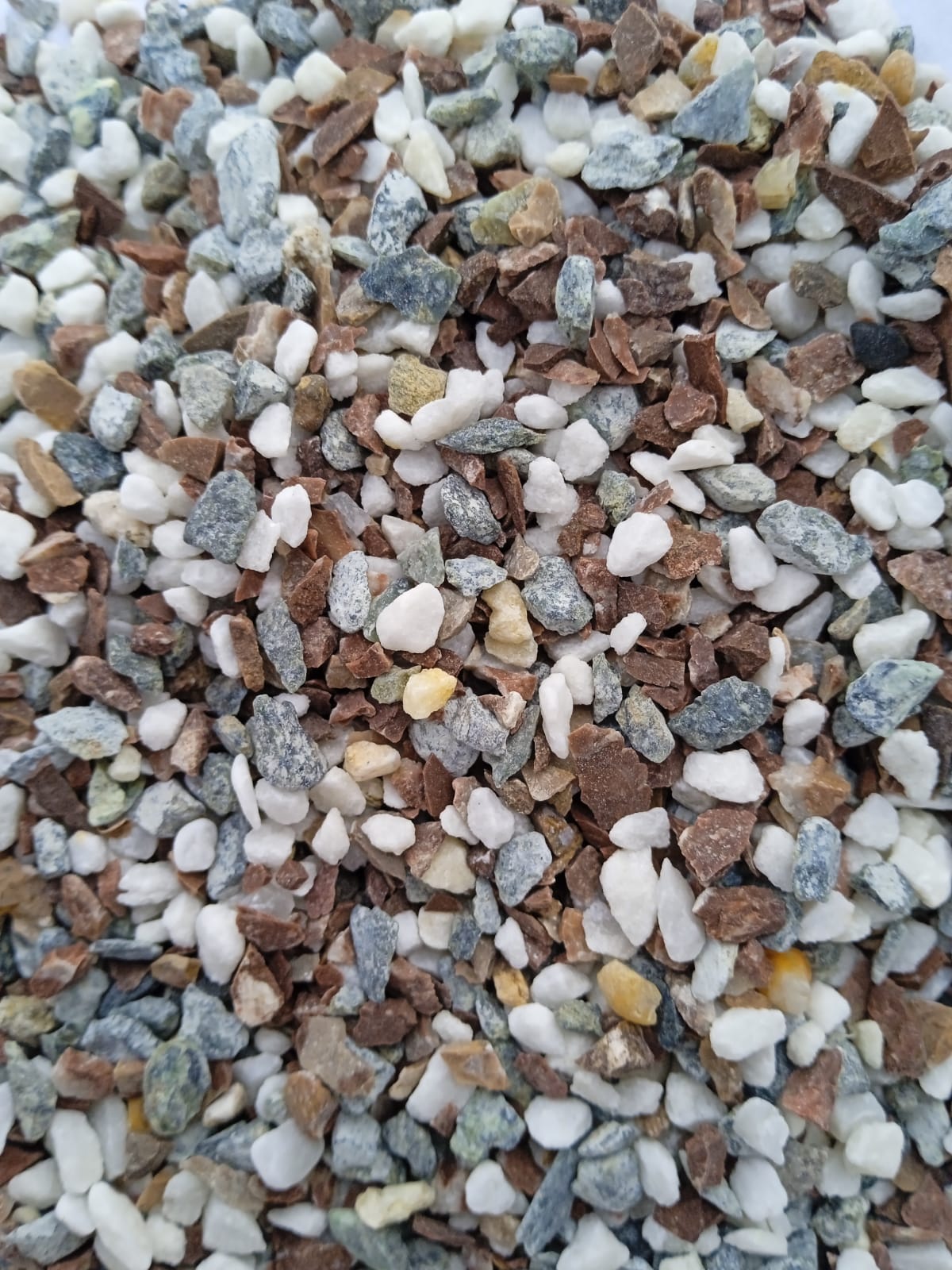 • Мраморная крошка (щебень галтованный микс:белый-черный-розовый-медовый) фр.5-10 мм.