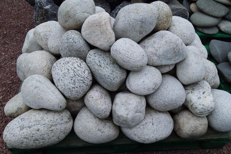 Kamenclub.ru: бело-серый валунчик фр.100-300 мм. купить в Воронеже - заказать природный камень по низким ценам оптом с доставкой от производителя - kamenclub.ru